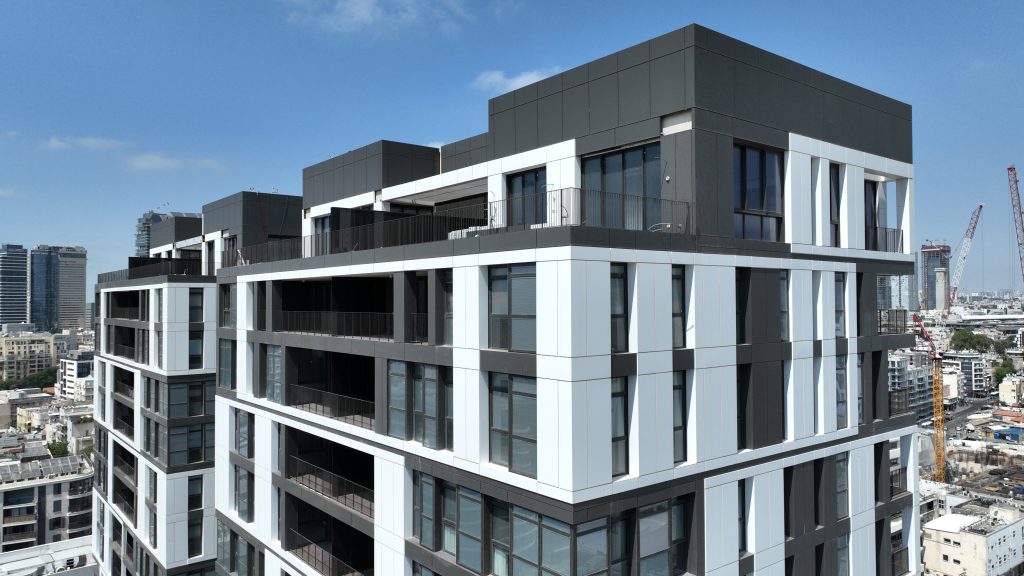 חומרי חיפוי: אלקובונד (ACP) 13500 מ"ר ו- HPL 2300 מ"ר